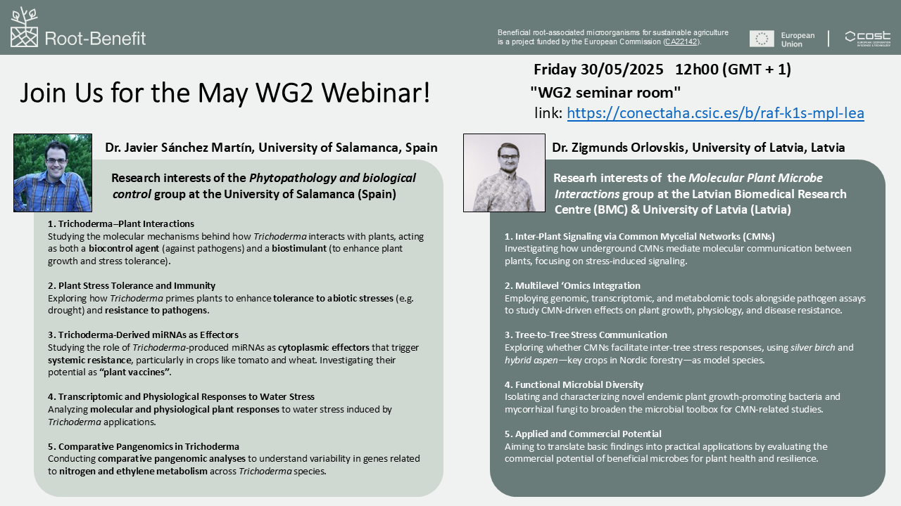 Join us for the May WG2 ROOT-BENEFIT COST Webinar! This event will take place on 30th May (Friday) at 12h00 (CET). This day, talks will be given by:
